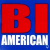 BI American Sticker. UV resistant colors on white vinyl background. Good for indoor and outdoor use. Adhesive on the back. 3 x 3″ or 7.6 x 7.6cm