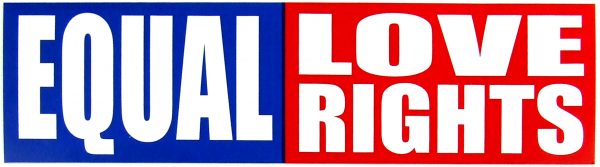 Equal Love Equal Rights Sticker. UV resistant colors on white vinyl background. Good for indoor and outdoor use. Adhesive on the back. 2.5 x 9.25″ or 6.4 x 23.5cm