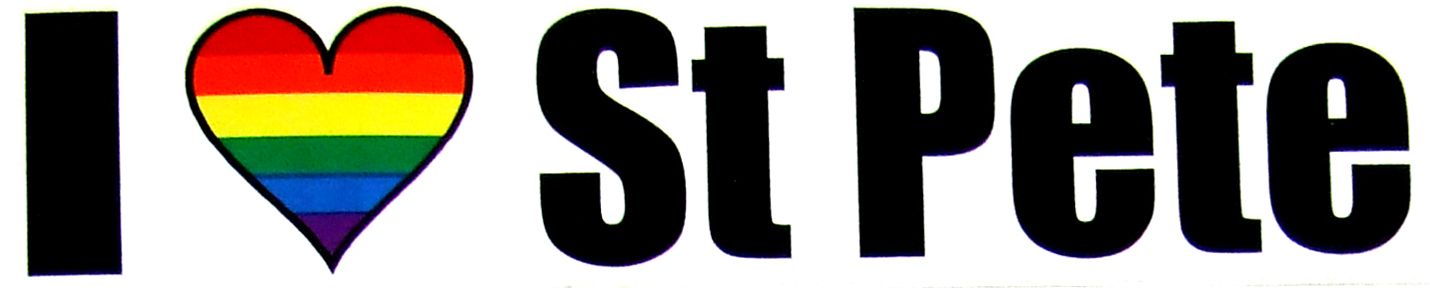 I Love St Pete Sticker. Vibrant UV resistant colors on a white vinyl background. Good for indoor and outdoor use. Adhesive on the back. 2 x 9.25″ or 5.1 x 23.5cm