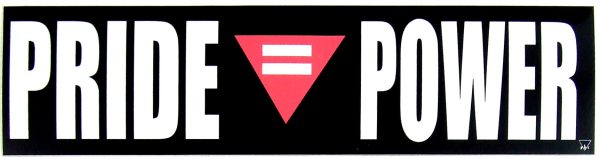 Pride=Power Sticker. UV resistant colors on white vinyl background. Good for indoor and outdoor use. Adhesive on the back. 2.5 x 9.25″ or 6.4 x 23.5cm
