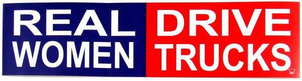 Real women drive trucks Sticker. UV resistant colors on white vinyl background. Good for indoor and outdoor use. Adhesive on the back. 3 x 11.5″ or 7.6 x 29.2cm