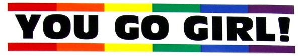 “You Go Girl” Sticker. Vibrant double rainbow strips in UV resistant colors on a white vinyl background. Good for indoor and outdoor use. Adhesive on the back. 1.5 x 8″ or 3.8 x 20.3cm