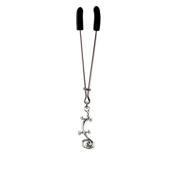 Check out this stylish gecko charm hanging on a gleaming chrome tweezer style clit clamp. The tweezer clamp is fully adjustable by sliding the bar up or down. includes organza gift storage bag (color will be random) A clit clamp is a simple sex toy designed to gently squeeze the clitoris and provide thrilling arousal without vibrations. Clit clamps are gentle sex toys designed to enhance female sexual pleasure.