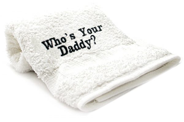 This fun embroidered “who’s your daddy?” towel is not only a unique and clever gift; it is also a very practical and usable one. embroidered with one of 48 different sexy words or phrases these towels are super absorbent. made in the usa; these 86% cotton and 14% polyester towels measure 27″ x 16″ and are machine washable. shouldn’t you keep at least one handy?